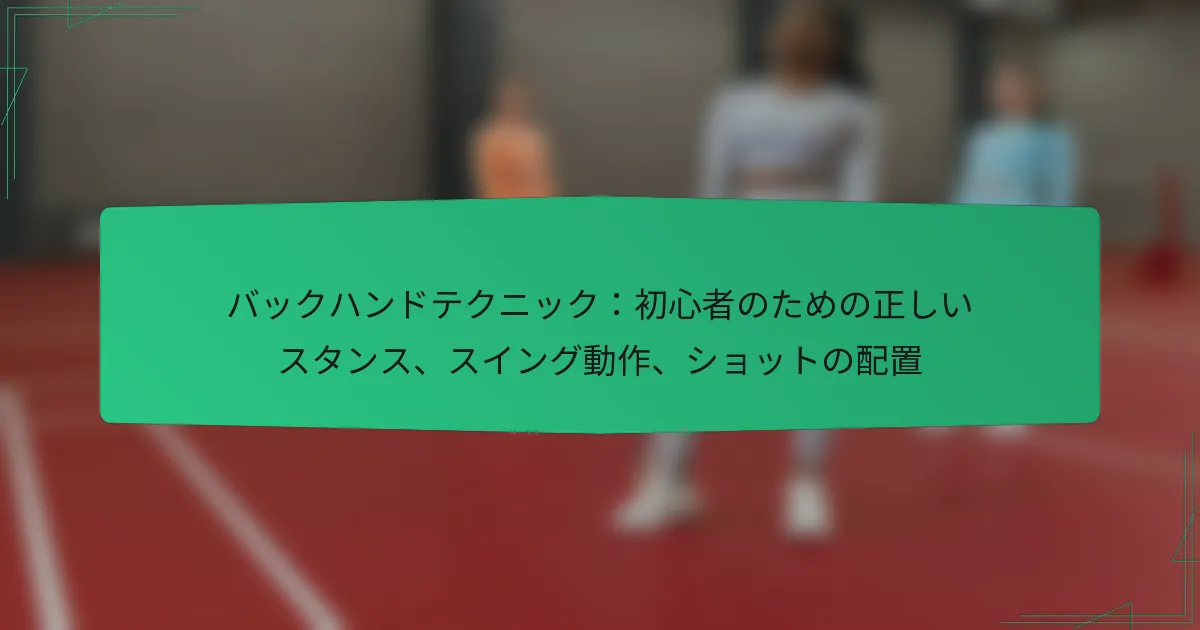 バックハンド技術をマスターすることは、テニスのゲームを向上させたい初心者にとって不可欠です。適切なスタンスはバランスとコントロールの基礎を築き、効果的なスイングモーションは腕の協調とラケットの角度を組み合わせて強力なショットを生み出します。さらに、ショットの配置に焦点を当てることで、プレイヤーはコートの特定のエリアを戦略的に狙い、ポイントを獲得するチャンスを高めることができます。