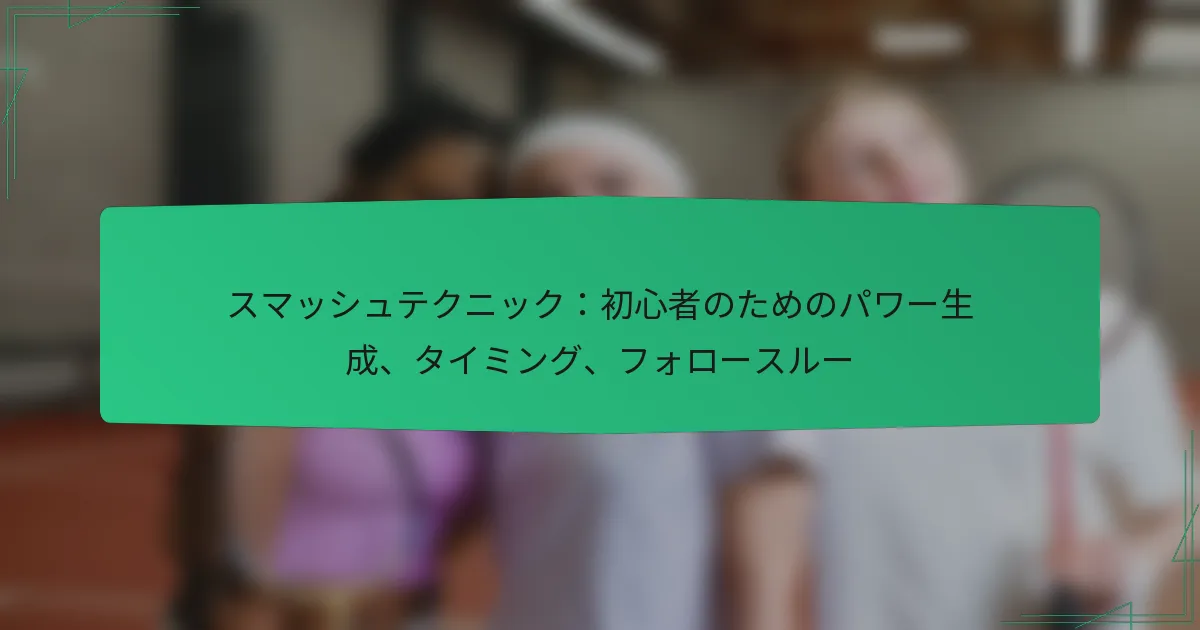 初心者は、適切な身体のメカニクス、スタンス、腕の動きに焦点を当てることで、スマッシュで力を生み出すことができます。これらの要素を効果的に組み合わせる方法を理解することで、全体的なパフォーマンスが向上し、スマッシュの力が増します。