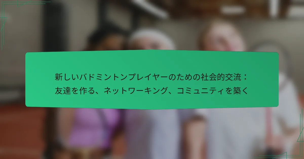 社交イベントやミートアップは、新しいプレーヤーが他のバドミントン愛好者とつながるための優れた方法です。これらのイベントには、カジュアルなプレーセッション、ポットラック、または交流を促進するテーマナイトが含まれることが多いです。