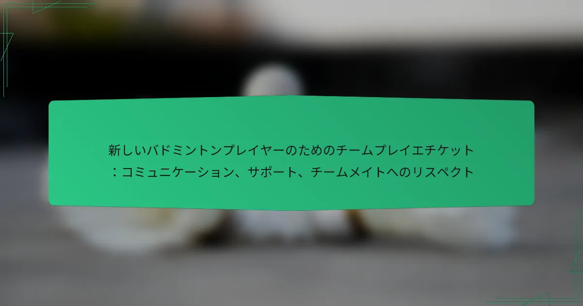 バドミントンにおけるチームプレイのエチケットは、新しいプレイヤーにとって非常に重要です。これは、効果的なコミュニケーション、サポート、そしてチームメイト間の相互尊重を含みます。これらの原則を受け入れることで、プレイヤーはパフォーマンスを向上させるだけでなく、コート上での友情を強化するポジティブな雰囲気を作り出すことができます。